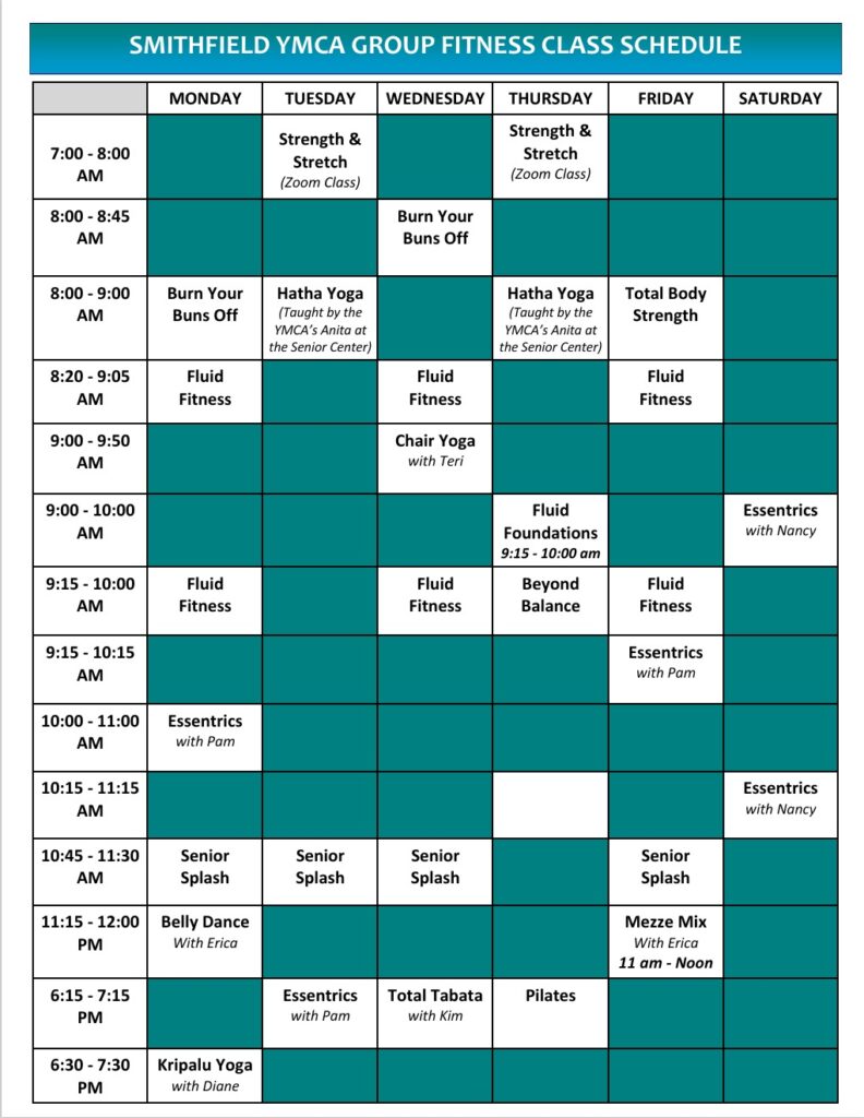 Classes which require pre-registration are for Smithfield YMCA Members only. These classes are NOT available for Reciprocal membership types due to class size limitations.