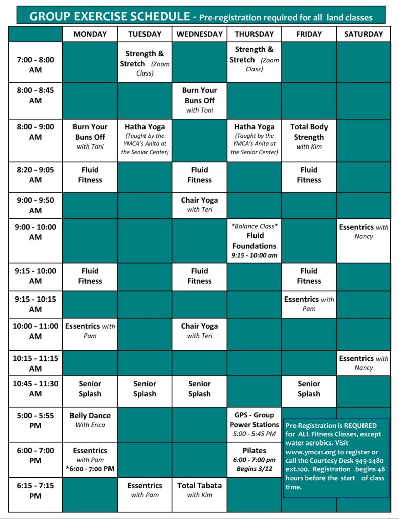 *Pre-Registration is REQUIRED for all Fitness Classes except for water aerobics.